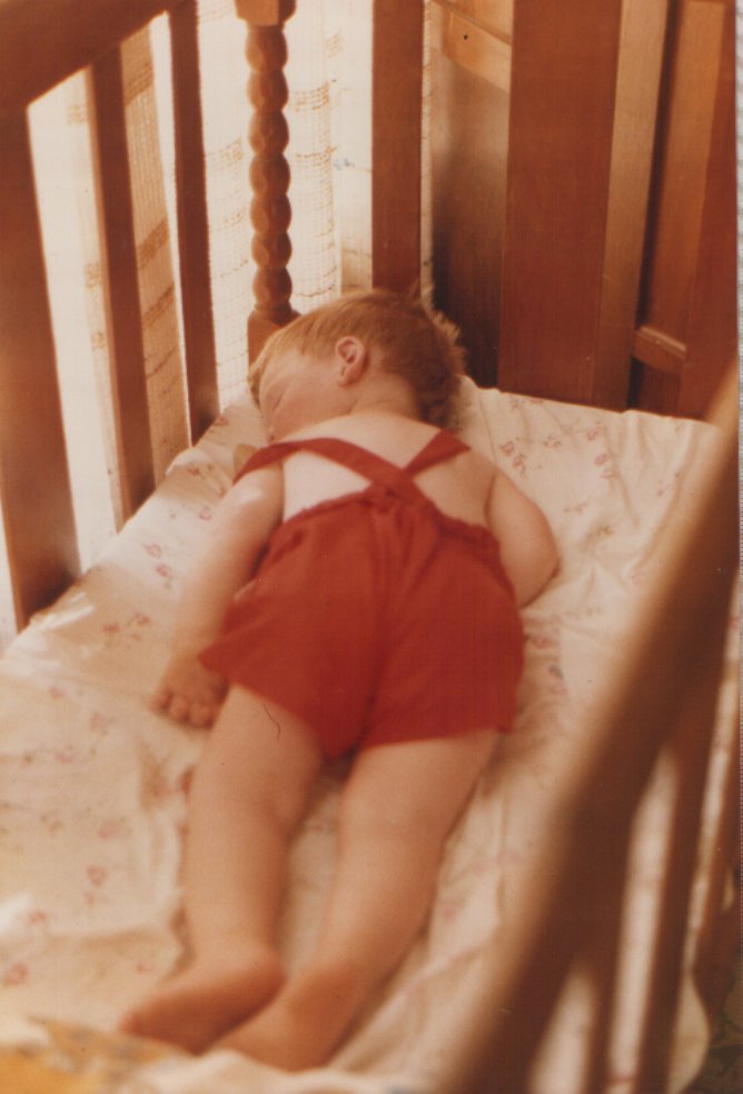 Henning slaap in die bababed. |