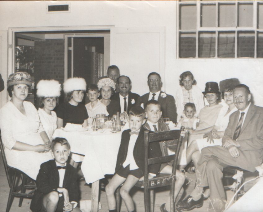 Pa Sarel, Sarel(Hansie se kind), ma Martha, Dirk Potgieter(Hendrik se pa), Janie(Hendrik se ma), Annemarie en Hendrik Potgieter met hulle troue. |